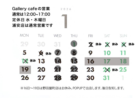 1月のGallery cafe STAGEの営業について